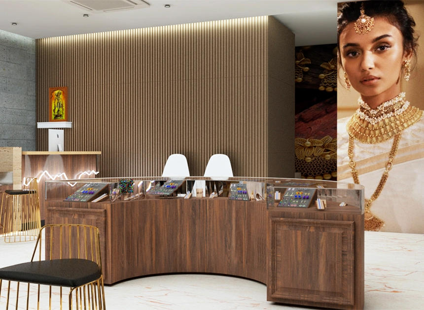 This project captures the essence of luxury retail, where design enhances the brilliance of every jewel. The interiors are crafted with refined details, premium finishes, and strategic lighting that highlights each display with elegance. A seamless blend of modern sophistication and timeless charm creates an inviting ambiance that elevates the shopping experience. The result is a jewellery store that reflects prestige, inspires trust, and leaves a lasting impression on every visitor.